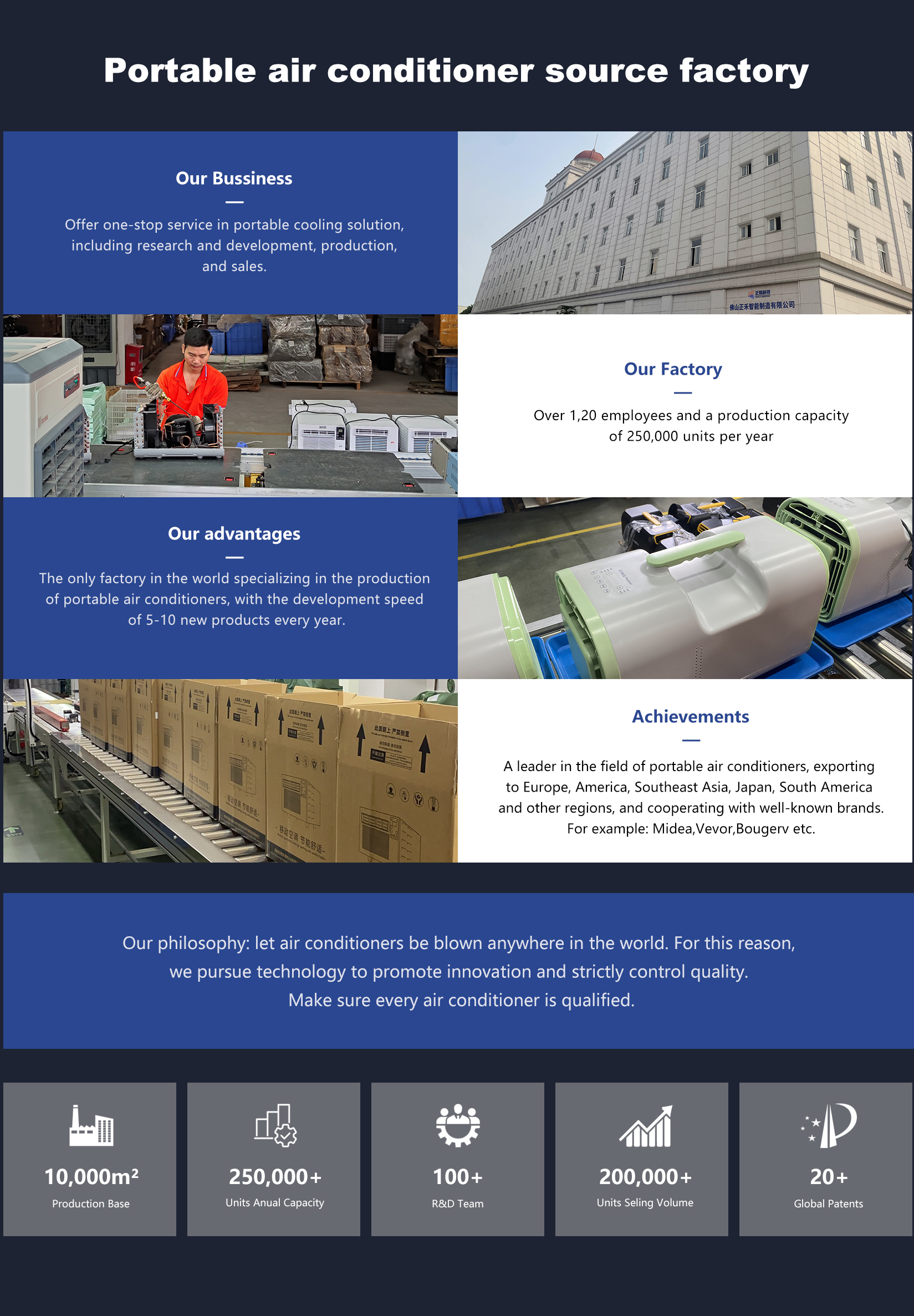 Principais produtos:Condicionador de ar portátil, condicionador de ar móvel, condicionador de ar ao ar livre, mini condicionador de ar, condicionador de ar de acampamento